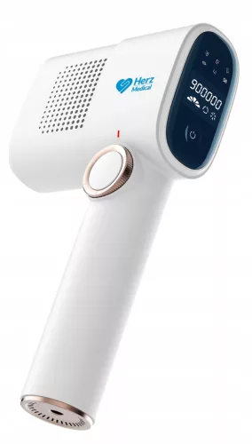 Uchwyt depilatora IPL od Herz Medical Instrument z dwufunkcyjny, przyciskiem za pomocą, którego szybko dostosujesz moc programu.
