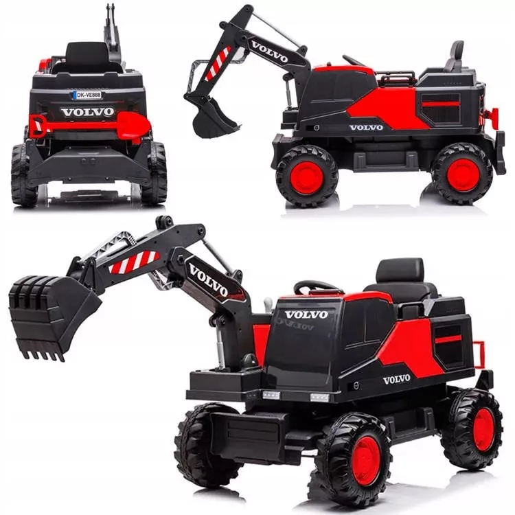 Koparka Volvo wyposażona jest w 2 x silnik (2 x 12V 45W) + akumulator (1 x 12V/14Ah) + pilot dla rodzica 2,4 GHz.