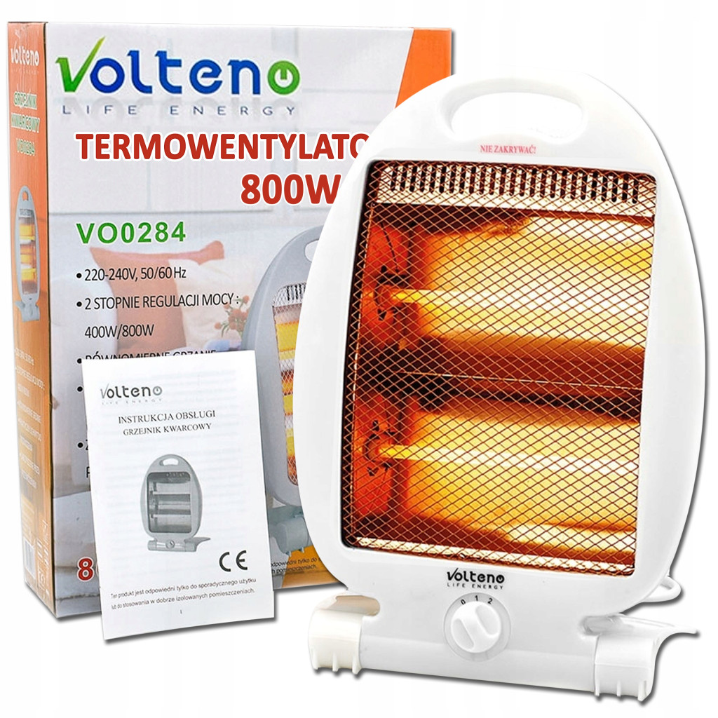 ⭐ Przenośny grzejnik kwarcowy wyposażony został w dwie lampy kwarcowe - każda z nich jest o mocy 400W, więc maksymalnie urządzenie ma moc 800W.