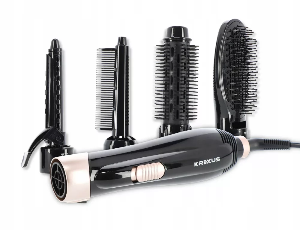 Suszarko-lokówka 4 w 1 marki Krexus to must-have współczesnej kobiety. Suszarka i szczotka w jednym. Wielofunkcyjne urządzenie, które zapewni Ci optymalne efekty i umożliwi stworzenie wyjątkowej fryzury na każdy dzień. Ergonomiczny kształt zapewnia dobry chwyt, co pozwoli Ci szybko i sprawnie wymodelować każde pasmo włosów. Zjawiskowe loki, lekkie fale, gładkie włosy, mega objętość – przygotuj doskonałą stylizację w zaledwie kilka chwil. Jednoczesne suszenie i modelowanie to niebywała wygoda, oszczędność czasu oraz znaczne ułatwienie, szczególnie dla tych z Was, które do tej pory miały trudności z układaniem włosów. Poczuj się pewnie i zyskaj maksymalny komfort użytkowania.