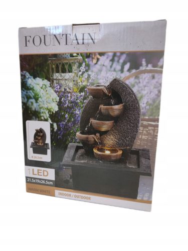 Dekoracja wodna uzupełni każdy wystrój wnętrza. Ma wodospad i jest podświetlona diodami LED, co zapewnia oszałamiający efekt wizualny, szczególnie w nocy. Wykonana z żywicy poliuretanowej jest odporna na promieniowanie UV, co oznacza, że będzie dobrze wyglądał i zachowa swój kolor po wystawieniu na bezpośrednie działanie promieni słonecznych.