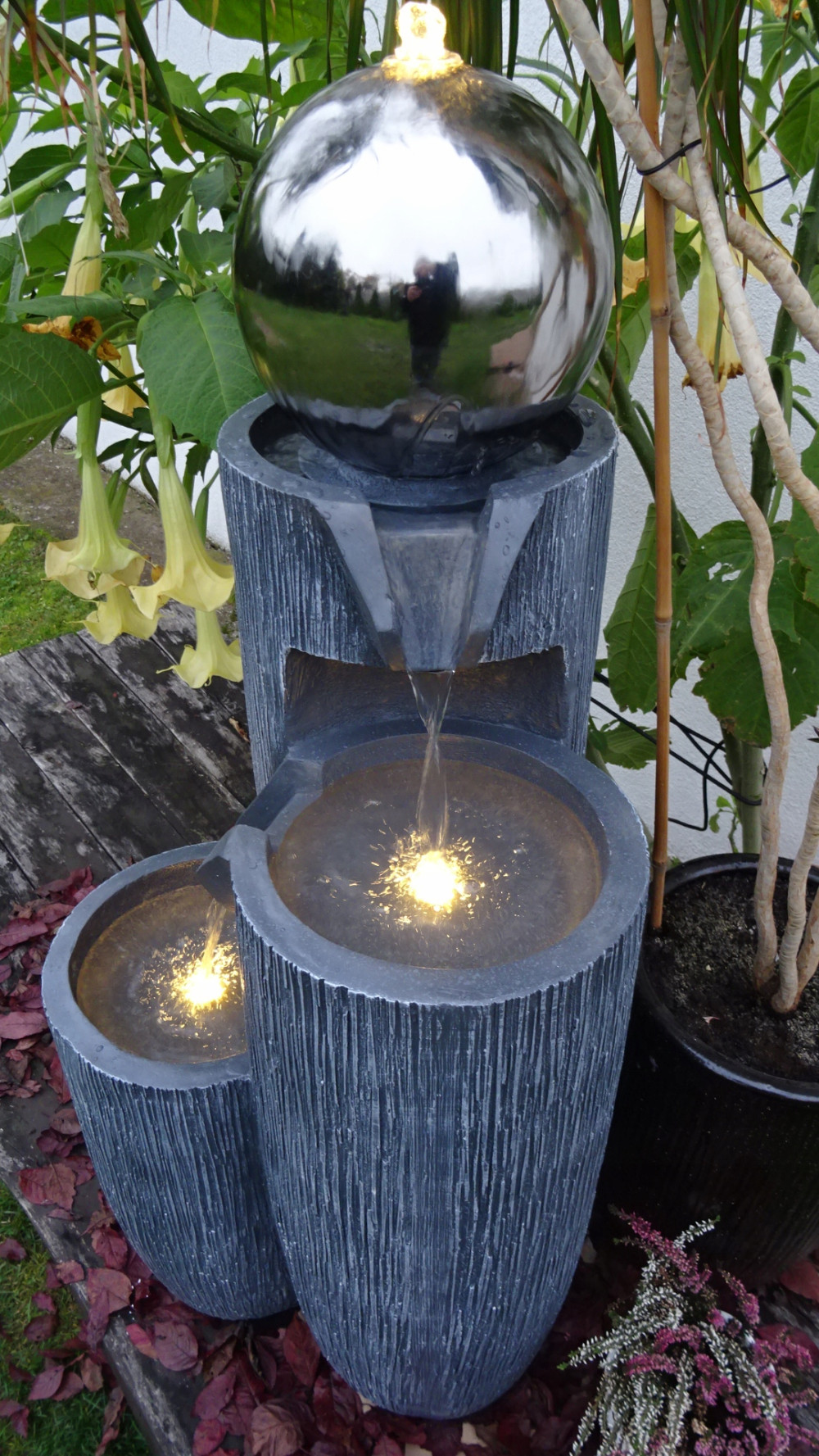 FONTANNA OGRODOWA " I D A " wysokość 109 cm - oświetlenie LED - zamontowane . Granat/antracyt/srebrny.
