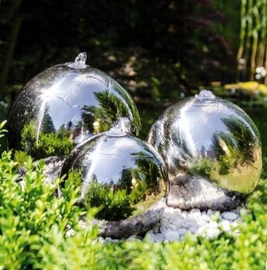 Fontanna ze stali nierdzewnaj zestaw 3 Kule. Śr. 28/38/48 cm.