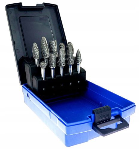 Zestaw zawiera 10szt pilników obrotowych w najczęściej używanych kształtach i wymiarach. Solidne, odporne na pękanie opakowanie z tworzywa sztucznego chroni narzędzia przed uszkodzeniami.