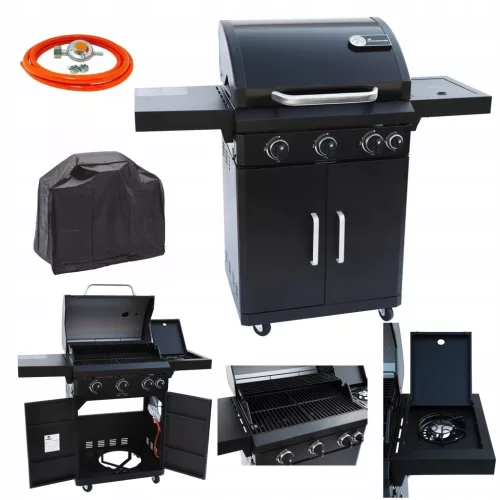 Landmann, Grill gazowy REXON PURE PTS 3.1– 11561 wykonany z lakierowanej w kolorze czarnym w połysku blachy stalowej; z opatentowanym systemem równomiernej emisji temperatury PTS;