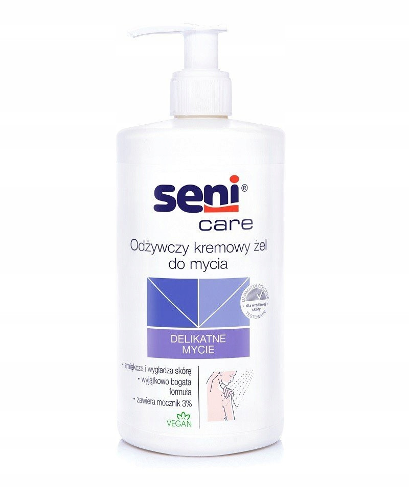 Kremowy żel do mycia ciała Seni Care intensywnie nawilża i natłuszcza skórę. Odbudowuje naturalny płaszcz hydrolipidowy. Zmniejsza uczucie ściągnięcia skóry już przy pierwszym użyciu. Polecany jest do codziennej pielęgnacji suchej skóry. Zmiękcza, wygładza, nawilża i odżywia skórę. Pozostawia skórę przyjemną i miękką w dotyku.
