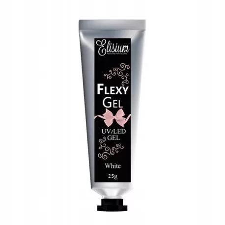 Flexy Gel od Elisium to cudowny produkt do przedłużania oraz nadbudowywania paznokci dla profesjonalistek, jak i również dla początkujących stylistek. Połączenie trwałości akrylu oraz elastyczności żelu UV sprawi, że Twój manicure będzie perfekcyjny przez długi czas. Produkt jest bardzo plastyczny, a jego bardzo gęsta konsystencja powoduje, że formuła nie spływa, dzięki czemu możesz formować akrylożel w dowolny sposób. Aplikacja produktu jest bezproblemowa. Odcień White to idealna baza do dalszej stylizacji paznokci lub do stylizacji french manicure.