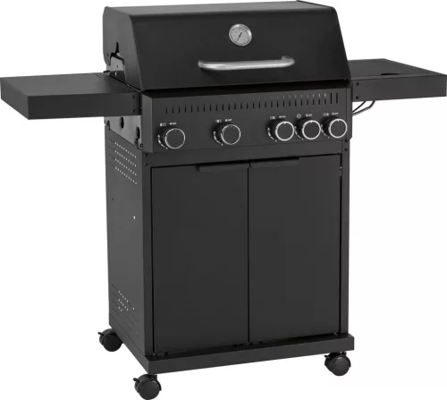 Grill został wyposażony w cztery niezależnie regulowane palniki, co zapewnia równomierne nagrzewanie i precyzyjne przygotowywanie potraw. Dodatkowy palnik boczny umożliwia gotowanie sosów lub podgrzewanie potraw bez konieczności korzystania z osobnej kuchenki.