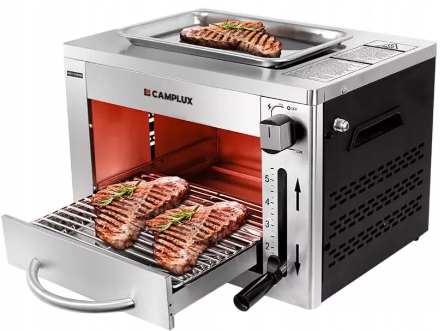 CAMPLUX SG102 przenośny grill gazowy 3,2 kW, wysokowydajny grill do steków ze stali nierdzewnej, 880°C grill wysokotemperaturowy z 5 poziomami wysokości