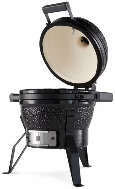 że masz do dyspozycji solidne urządzenie do gotowania. Części stalowe są powlekane, a ruszt do gotowania jest wykonany ze stali nierdzewnej. Zawiera również warstwę emalii porcelanowej, która czyni go odpornym na rdzę i łuszczenie. Pozwala to bezpiecznie pozostawić grill Kamado na zewnątrz. Uchwyt jest wykonany z bambusa, aby nie nagrzewał się podczas gotowania.