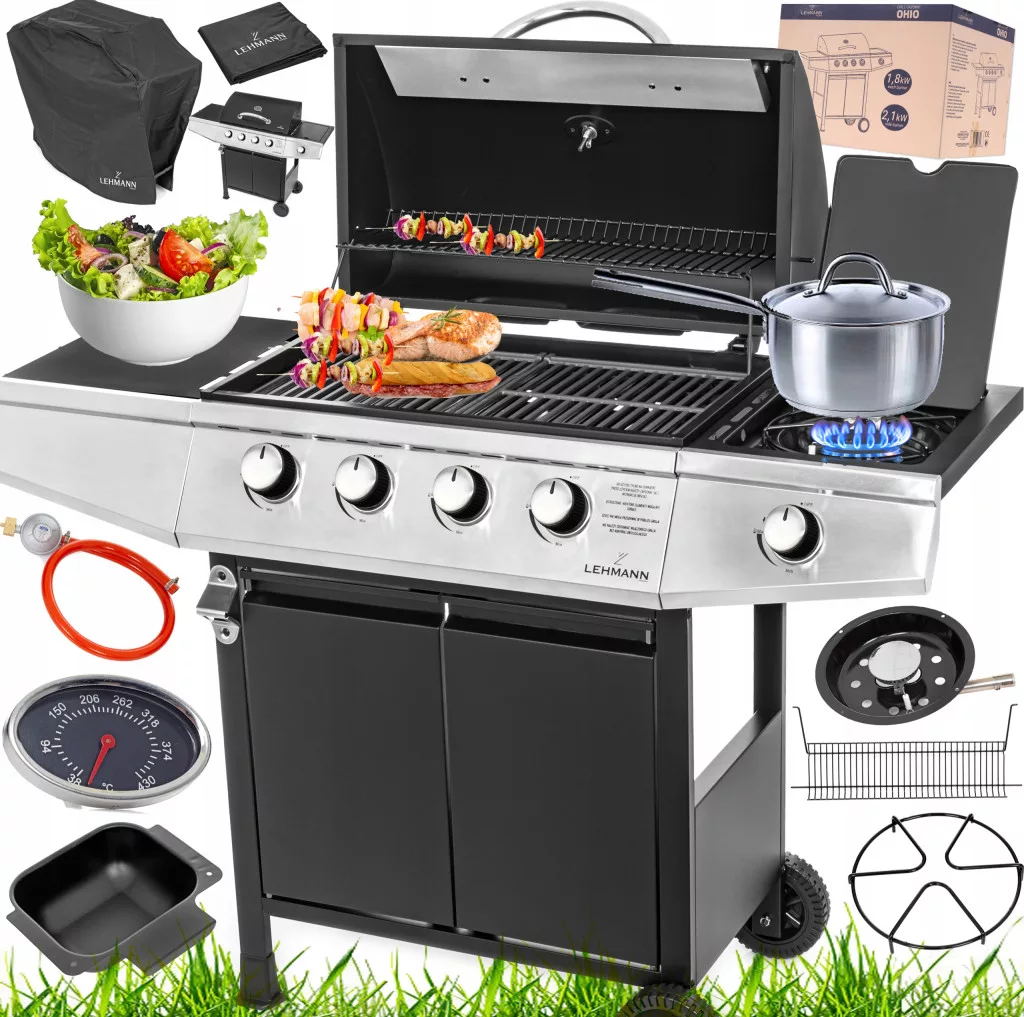 Kupując u nas GRILL LEHMANN otrzymasz w zestawie komplet przyłączeniowy w postaci węża, reduktora i opasek.