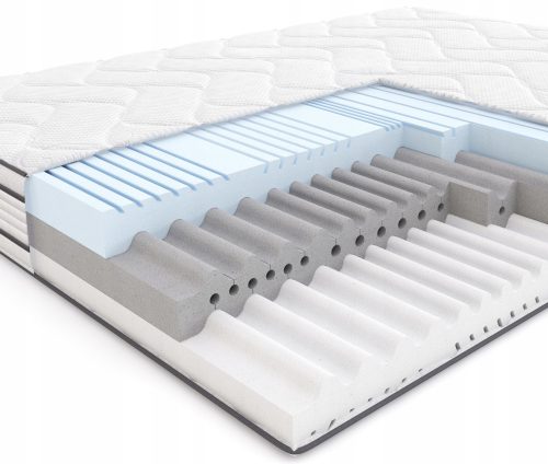 Konstrukcja materaca oparta jest na piance wysokoelastycznej HR. Wkład jest obłożony po jednej stronie profilowaną, białą pianką hybrydową, a po drugiej stronie - profilowaną, niebieską pianką wysokoelastyczną HR.
