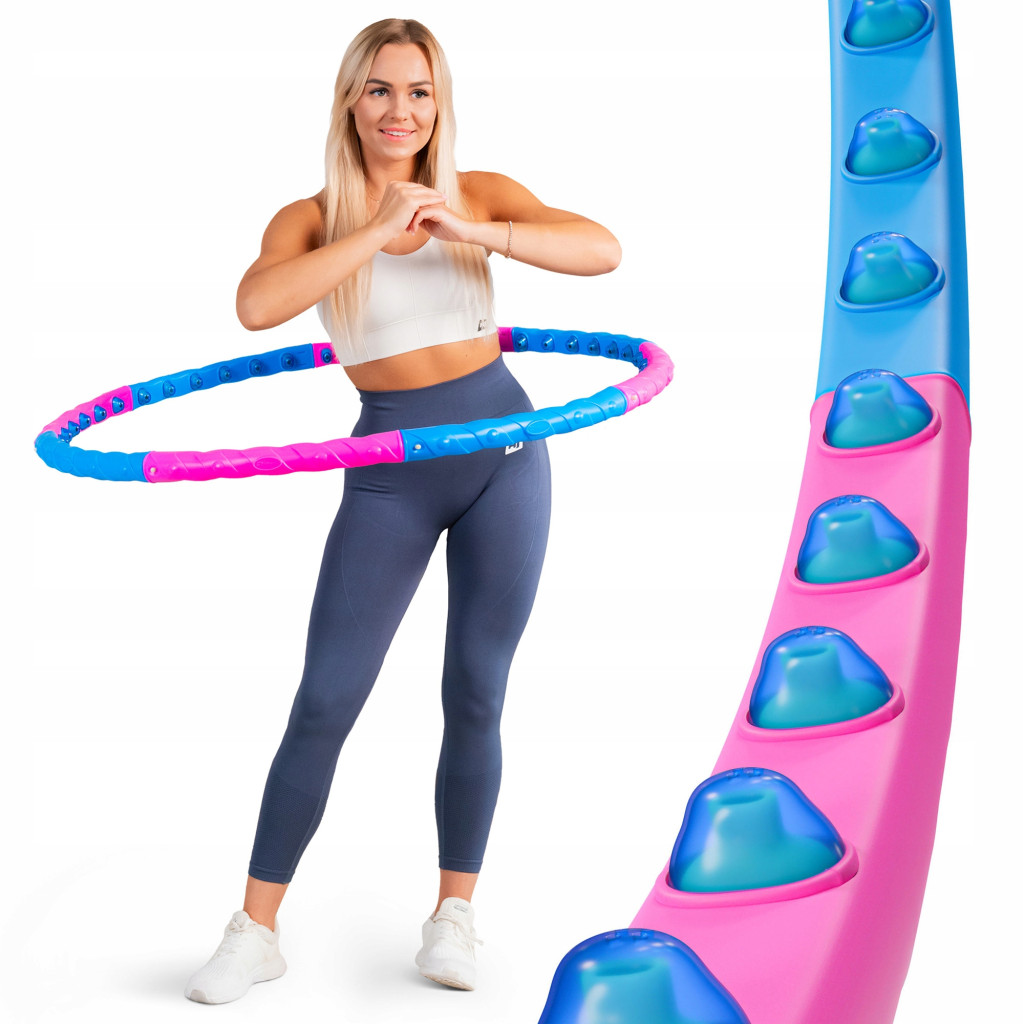 Hula-hop, w kolorze różowo-niebieskim, wyposażyliśmy w 48 kulek magnetycznych, umieszczonych w jednym rzędzie na całej powierzchni koła. Masaż, który wykonasz za pomocą wypustek, nie tylko podniesie efektywność ćwiczeń, przyczyniając się do rozbicia tkanki tłuszczowej i szybszego spalania kalorii, ale także poprawi krążenie krwi i wzmocni mięśnie. Umieszczenie magnesów w miejscu wypustek, pozytywnie wpłynie na równowagę elektromagnetyczną w Twoim ciele, a pośrednio przyczyni się także do szybszej regeneracji tkanek. Hula-hop z wypustkami, gwarantuje bardziej intensywne treningi, w porównaniu do klasycznych modeli, dzięki czemu dużo szybciej będziesz w stanie zauważyć pierwsze efekty ćwiczeń.