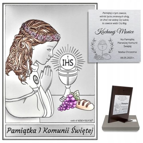 Ten uroczy srebrny obrazek z grawerem na Pierwszą Komunię Świętą to idealny wybór jako wyjątkowy prezent komunijny dla dziewczynki. Nie tylko piękna pamiątka, ale także praktyczny przedmiot, który będzie cieszył przez wiele lat.