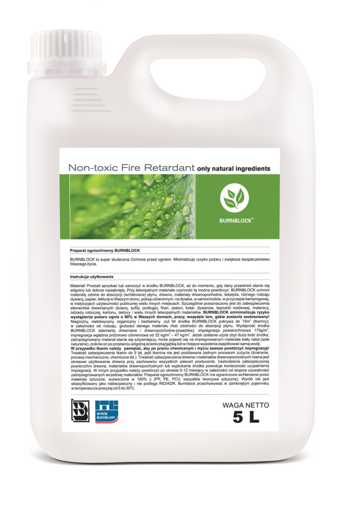 BURNBLOCK jest szczególnie przydatny w miejscach publicznych, w których przepisy prawa wymagają zastosowania ochrony przeciwpożarowej, a jednocześnie kładzie się nacisk na nieszkodliwość i nietoksyczność użytych do tego środków. Za pomocą BURNBLOCK można pokryć wiele rodzajów materiałów, eliminując w ten sposób zagrożenie pożarowe i nie stwarzając zagrożenia toksycznymi wyziewami czy gazami.