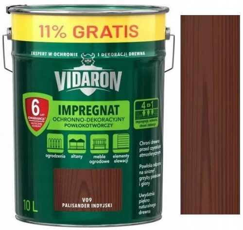W połączeniu z bezbarwnym Impregnatem gruntującym Ochronnym VIDARON zapewnia pełną ochronę drewna.
