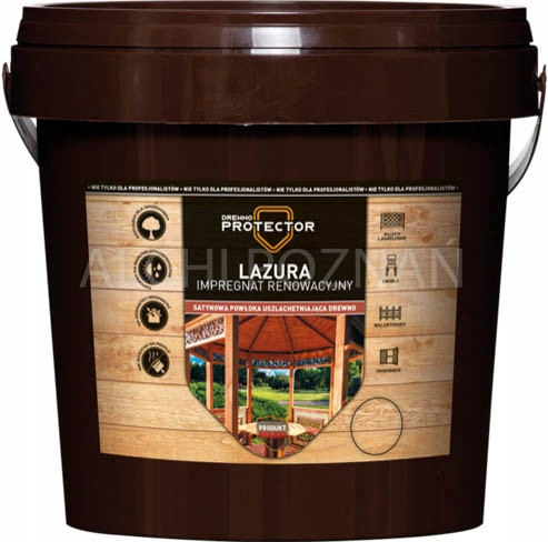 ZASTOSOWANIE: impregnat renowacyjny LAZURA jest stosowany do barwienia i zabezpieczenia drewnianych wyrobów oraz konstrukcji. Środek służy także do barwienia powierzchni, tworząc satynową powłokę uszlachetniającą drewno. LAZURA może być wykorzystywany przy impregnacji m.in. drewnianych altan, balustrad, drzwi, mebli, okiennic, pergoli czy elewacji z drewna. Środek do stosowania zarówno wewnątrz pomieszczeń jak i na zewnątrz.