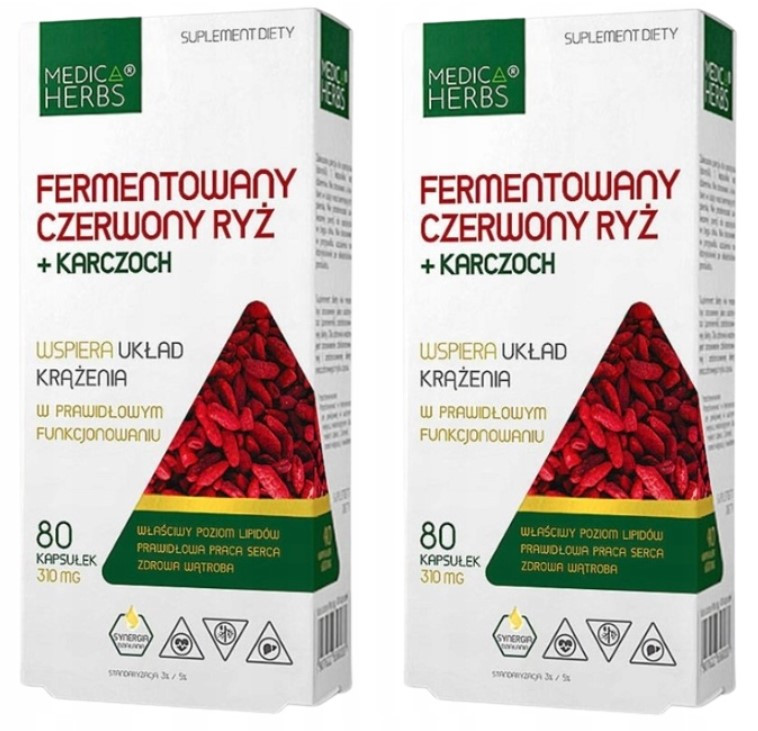 ✅ Każda kapsułka zawiera 99,8 mg Fermentowanego czerwonego ryżu (2,99 mg monakoliny K) oraz 160,2 mg wyciągu z liści Cynara scolymus (8 mg cynaryny).
