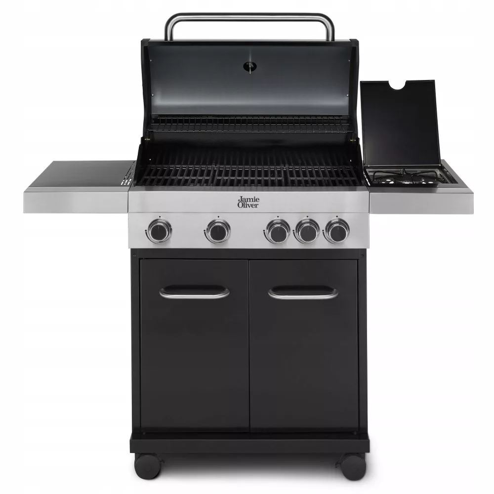 Jamie Oliver grill gazowy 4 palniki +1 bocznyJamie Oliver grill gazowy ze stali nierdzewny z żeliwnymi akcesoriami