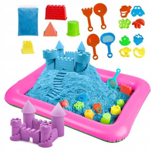 Magiczny piasek jest całkowicie bezpieczny - nie przykleja się do rąk ani nie brudzi. Jest to również zabawka terapeutyczna, która może być stosowana przy nadwrażliwości dotykowej, czy przy wzmocnieniu pracy rąk. W zestawie znajdują się: piasek kinetyczny, zestaw foremek oraz dmuchana piaskownica.