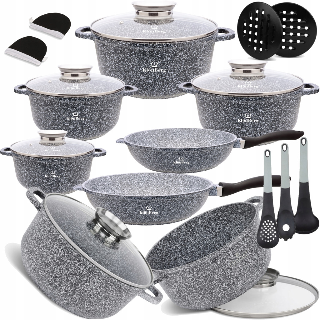 Zestaw garnków renomowanej firmy KlönBerg pozwala na komfortowe gotowanie, duszenie i pieczenie potraw. Luksusowa forma naczyń wchodzących w skład zestawu doskonale wpisuje się w każde kuchenne wnętrze, dodaje mu oryginalnego charakteru i umożliwia niebywale wygodne, bezpieczne i zdrowe przyrządzanie codziennych posiłków.