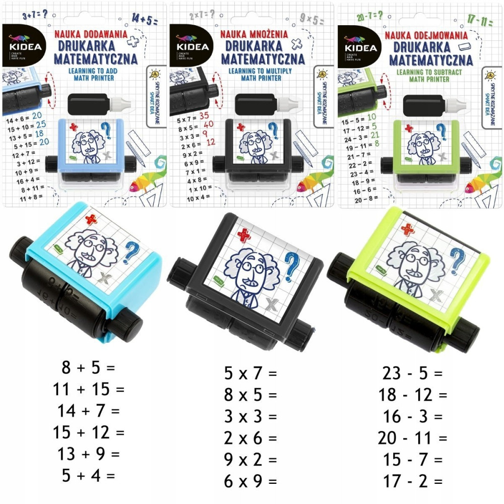 Zestaw 3 Drukarek matematycznych KIDEA: do nauki tabliczki mnożenia, dodawania i odejmowania.