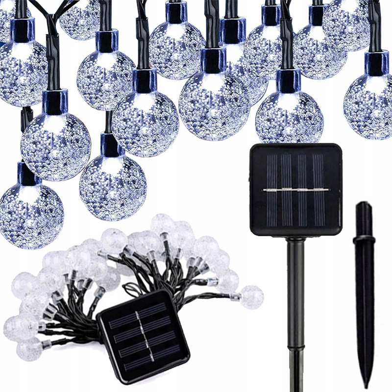 Krystaliczna konstrukcja bąbelkowa i bezpieczny w użyciu: Wykonany z materiału ABS o kształcie kryształowej żarówki, wodoodporny i trwały. Zasilany energią słoneczną, niskie zużycie mocy i niskie napięcie, bezpieczny w użyciu! Bez okablowania, żarówka 1,8 cm, panel słoneczny ze stojakiem na paliki ogrodowe, łatwy do zainstalowania na ścianie, oknie, drzewie!