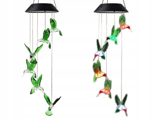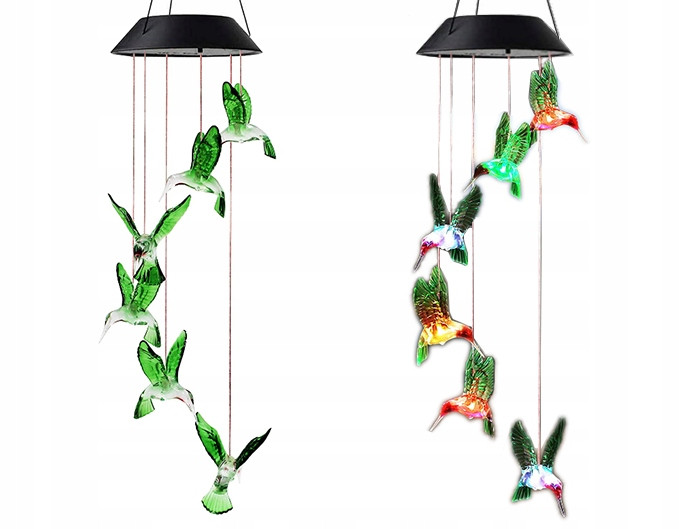 Dzwonki wietrzne KOLIBERKI LED to idealna dekoracja zewnętrzna / wewnętrzna. Idealna ozdoba podwórka, werandy, tarasu, ogrodu, salonu, sypialni jak również sposób na dekorację świąteczną. Dzwonki koliber LED są energooszczędne i przyjazne dla środowiska, panele słoneczne ładują się w ciągu dnia, i są automatycznie włączane w nocy.