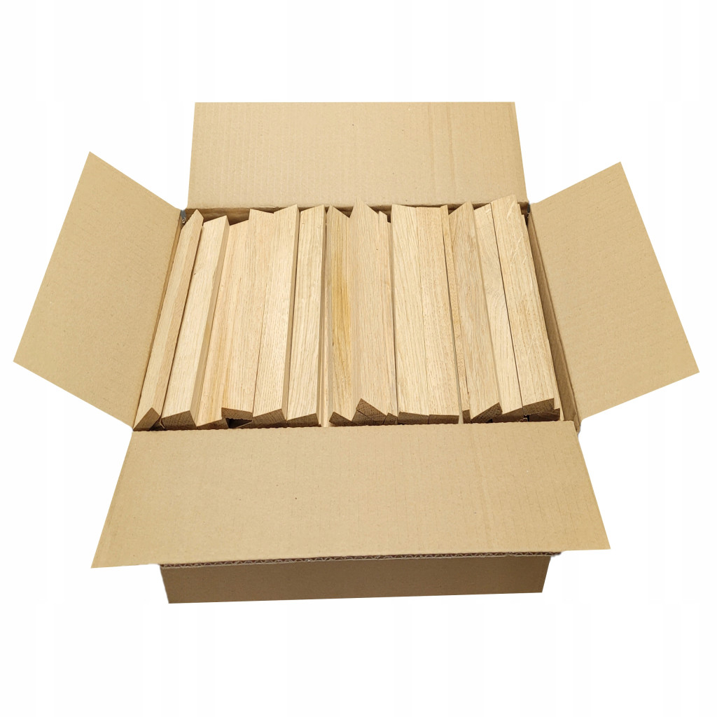Aukcja dotyczy kartonu wypełnionego drewnem rozpałkowym dębowym.