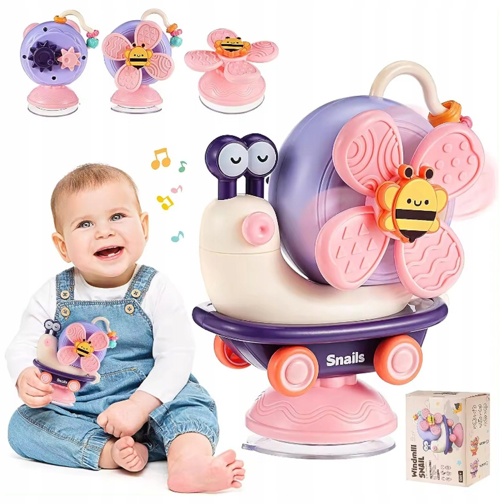 ✅ Zabawka 4w1 - spinner, samochodzik, przyssawka, ruchome koraliki i zębatka na skorupie ślimaka.
