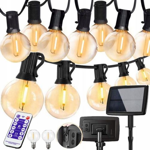 Solarna lampa łańcuchowa zewnętrzna G40 ma 10M długości, 30 Szt żarówek kulowych.Światła zasilane są energią słoneczną.Żarówki LED o wysokiej wydajności oszczędzają ponad 90% energii w porównaniu z żarówkami.Słoneczne zewnętrzne oświetlenie łańcuchowe automatycznie włącza się w nocy i wyłącza w ciągu dnia.