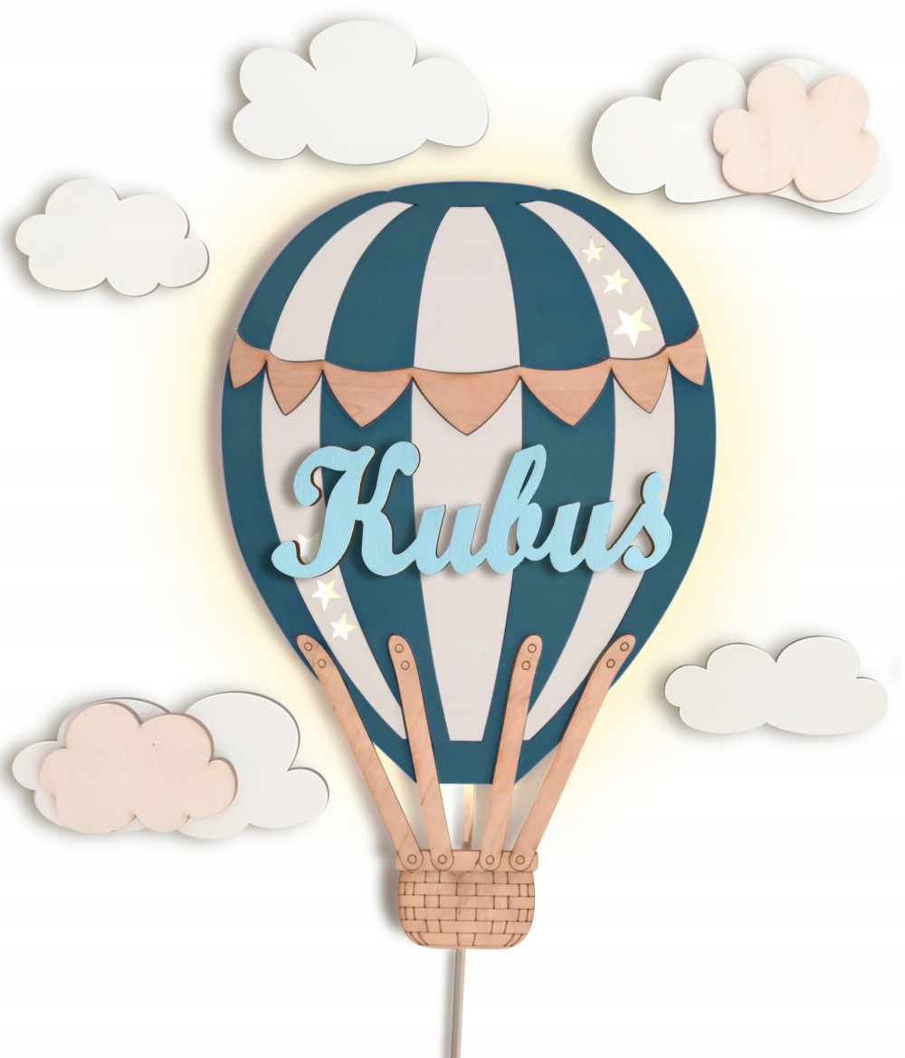 Przedmiotem sprzedaży jest oryginalna naszego pomysłu lampka nocna led w postaci balonu powietrznego z imieniem dziecka