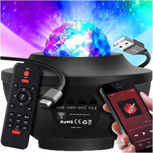 PROJEKTOR GWIAZD ZORZA POLARNA LAMPKA NOCNA DLA DZIECI USB BLUETOOTH +PILOT