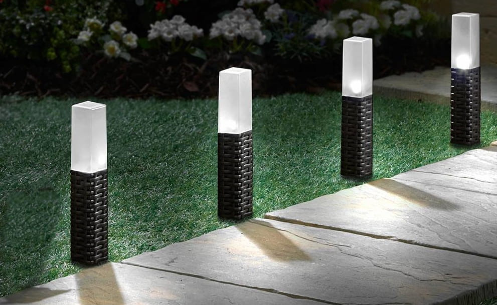Z czujnikiem światła dziennego do automatycznego włączania i wyłączania. Światła można bezpiecznie ustawić za pomocą dostarczonych kolców uziemiających.