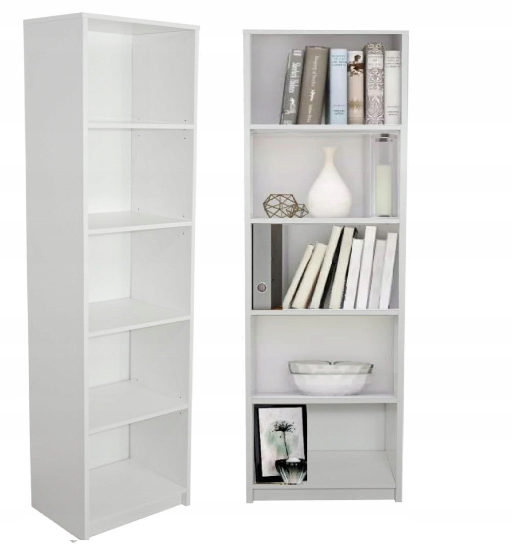 Regał posiada pięć półek, które można wykorzystać do celów biurowych jak i domowych.