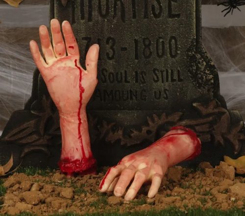 Gumowa, zakrwawiona ręka, z odstającymi kościami to doskonały rekwizyt na Halloween!