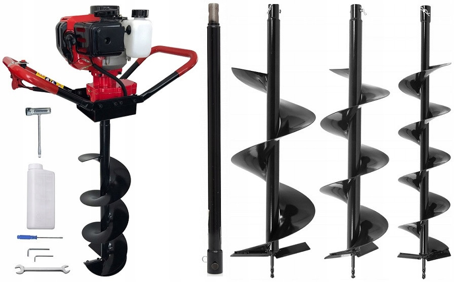 Wyposażony w silnik 2-suwowy o pojemności 63cc i mocy 5.2 KM, wiertnica jest gotowa do pokonywania różnych rodzajów gruntów bez najmniejszych problemów.