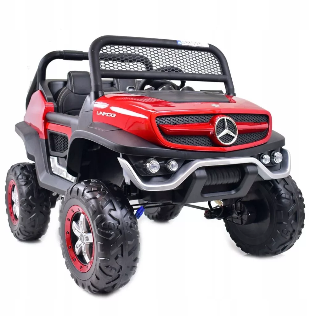 MERCEDES UNIMOG jeden z najlepiej wykonanych pojazdów na akumulator - zasilane na 12 V z napędem na 4 koła - zachwyci nie jednego przyszłego kierowcę. Dzięki zastosowanym najmocniejszym silnikom 45 W, auto jeździ po nierównym terenie bez żadnych problemów, a dodatkowo silniki te są bardzo dobrej jakości. Najciekawszą funkcją pojazdu jest NOWOCZESNY PANEL , SYSTEM WOLNEGO STARTU, AMORTYZATORY oraz SYSTEM HAMOWANIA Z PILOTA .