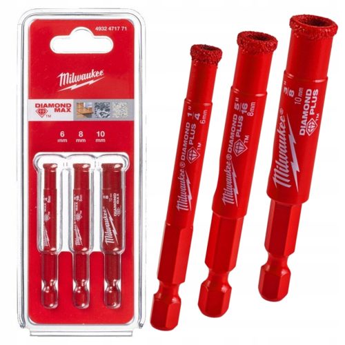 Zestaw zawiera 3 sztuki wierteł o Ø 6, 8, 10 mm.
