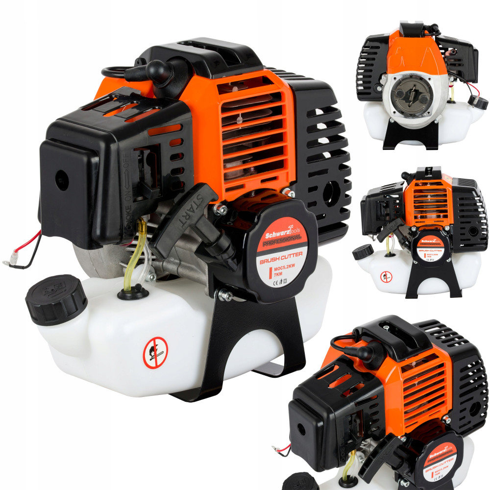 Silnik SCHWARZTOOLS do podkaszarek marek takich jak Demon, NAC, Bass, Mastiff, Lider, March-Power, John Gardener oraz wielu innych o rozstawie śrub mocujących 71x71mm. Silnik z najnowszego modelu na rok 2023, który został ulepszony. Został zamontowany japoński gaźnik, który cechuje się precyzyjnym dawkowaniem mieszanki paliwa, dzięki czemu ilość zużycia paliwa jest mniejsze w stosunku do kos z chińskimi gaźnikami. Ponadto okładzina na sprzęgle odśrodkowym została wykonana z materiałów o zwiększonym współczynniku tarcia, dzięki czemu żywotność tego podzespołu została zwiększona dwukrotnie.