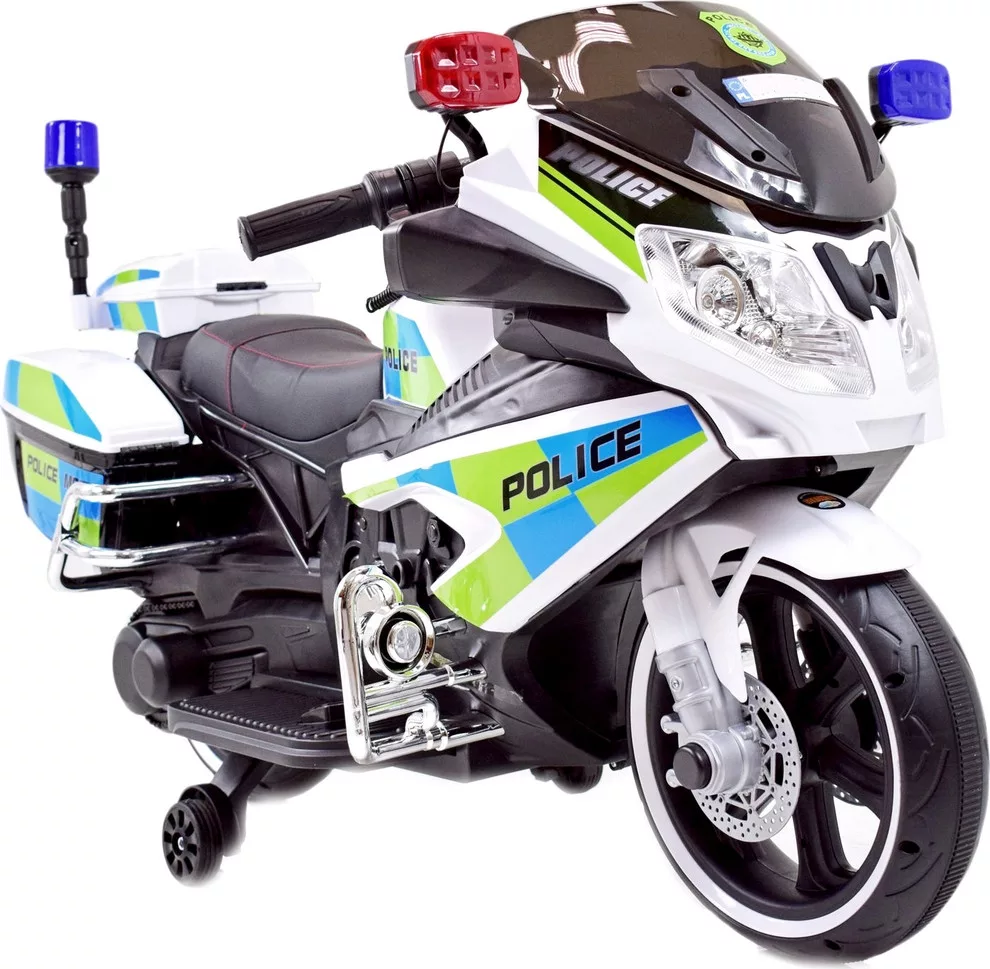 Posiada stacyjkę z kluczykiem, megafon z mikrofonem, dźwięki policyjnej syreny oraz migające światła i koguta policyjnego.