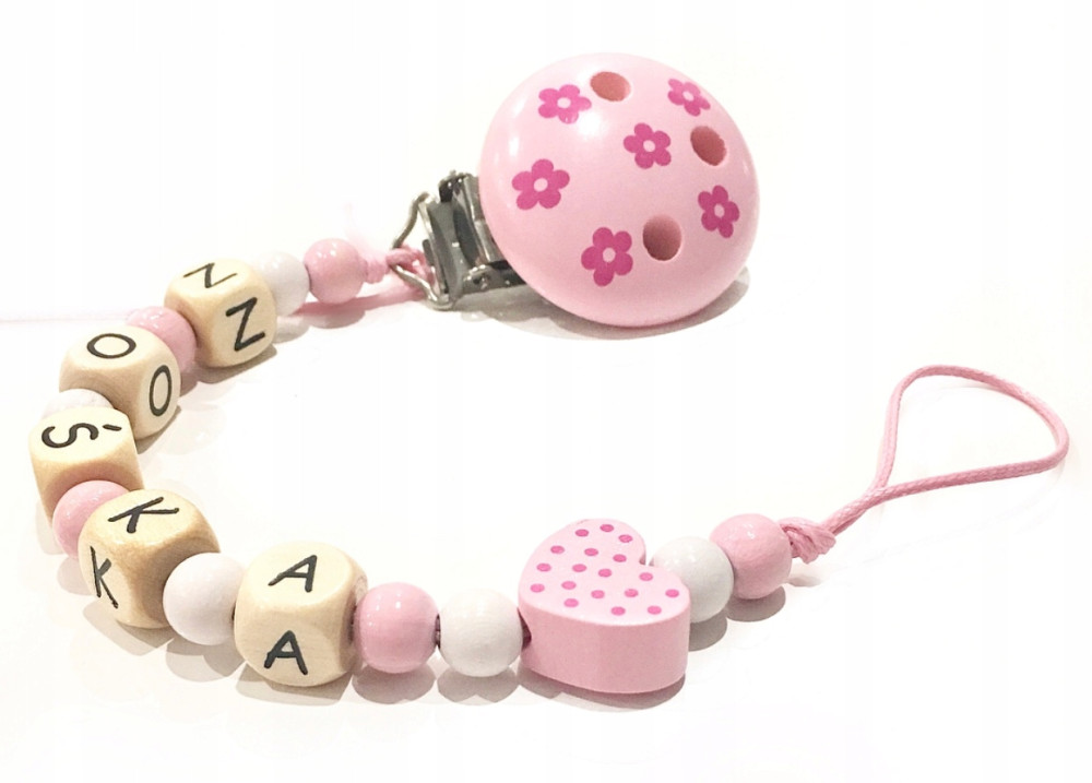 Zawieszki do smoczka drewniane, z imieniem lub bez, zawieszki wykonane z naturalnego drewna,koraliki lakierowane z atestem,sznurek poliestrowy.