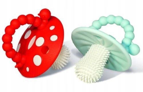 Dwa kolorowe silikonowe grzybki, które nie tylko zachwycają swoim unikalnym kształtem, lecz także zastosowaniem. To bezpieczne logopedyczne gryzaki dla niemowląt, które doskonale radzą sobie z dolegliwościami związanymi z ząbkowaniem. Wykonane z wyjątkowo delikatnego silikonu, pokrytego opatentowanym włosiem, skutecznie łagodzą ból i opuchliznę dziąseł. Grzybki RaZbaby są znakomitymi akcesoriami do żucia, gryzienia i każdej zabawy sensorycznej, która dostymuluje jamę ustną maluszka. Zostały wykonane z wysokiej jakości materiałów wolnych od BPA, PVC, ftalanów i ołowiu. Projektanci nie zapomnieli również o wygodzie małego użytkowania. Ich ergonomia to połączenie wyprofilowanego ustnika oraz poręcznego, teksturowanego uchwytu, przez co ułatwiają maluchom ich trzymanie. RaZbaby to gwarantowana ulga podczas ząbkowania, wygoda w użyciu i bezpieczeństwo dla zdrowia Twojego dziecka.