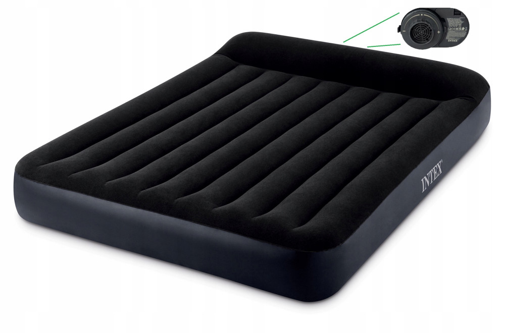 Taki właśnie jest dwuosobowy materac ciemno-grafitowy Pillow Rest "Classic Queen" z pompą marki INTEX, który posiada wymiary 152 cm x 203 cm x 25 cm.