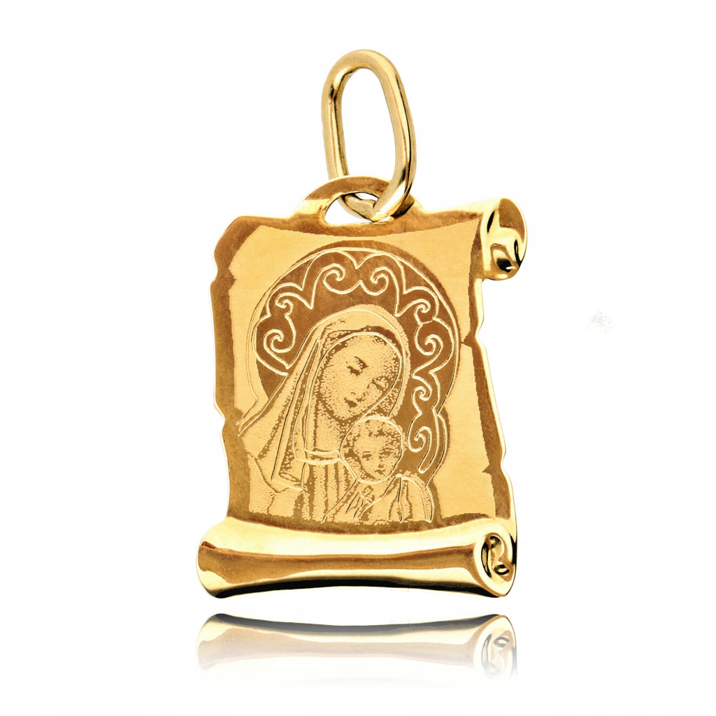 Złoty wisiorek medalik z Matką Boską.