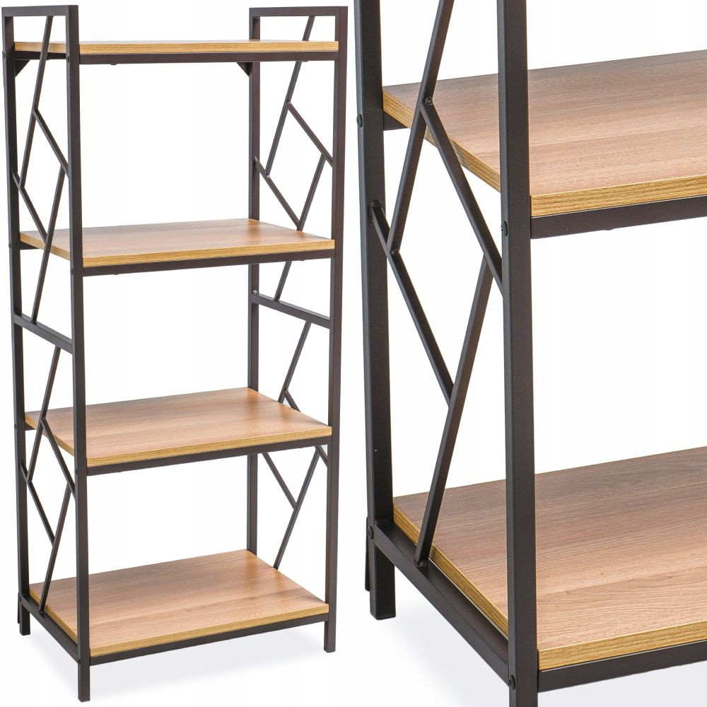 Regał posiada 4 pojemne półki, na których można wyeksponować książki, dekoracje czy kwiaty.