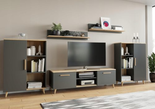 Ten zestaw mebli to gratka dla właścicieli małych mieszkań i kawalerek, ale nie tylko. Równie dobrze zaprezentuje się w większym salonie. Niezależnie od tego, gdzie się znajdzie, meblościanka Oslo wygląda elegancko i nowocześnie. Ale nie tylko ciekawy design jest tu zaletą. Nie bez znaczenia jest doskonała jakość wykonania oraz przemyślany projekt. Dzięki temu są to meble, które z powodzeniem stworzą cenną przestrzeń do przechowywania. Komplet tworzy harmonijną całość, która doda wnętrzu charakteru.