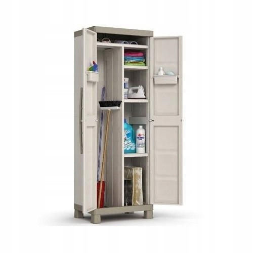 Wyposażona jest w 3 regulowane półki - każda o maksymalnym obciążeniu do 10 kg oraz jedną stałą półkę o udźwigu do 15 kg. Dużym udogodnieniem jest pojemna półka znajdująca się na górze. Natomiast pionowa komora jest idealnym miejscem do przechowywania mopa, zmiotki, wędki czy innych długich przedmiotów. Praktyczne schowki znajdujące się po wewnętrznej stronie drzwi doskonale sprawdzają się w przypadku przechowywania drobnych przedmiotów i akcesoriów.