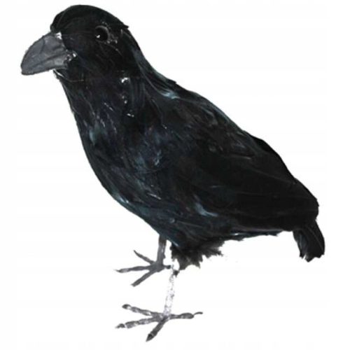 Czarny KRUK - ptaszysko kojarzące się jednoznacznie z Halloween i z czarownicami. Taka dekoracja przyczyni się do tego, że klimat będzie jeszcze bardziej mroczny... Kruk wygląda jak żywy. Wykonany jest ze styropianu, obłożony prawdziwymi piórami i ma bardzo realistyczne plastikowe detale jak oczy, dziób czy szpony. W szponach zatopione są elastyczne druciki - dzięki nim można kruka przyczepić niemal do każdej powierzchni czy wbić np. w styropianową podstawę. Kruk ma ~30 cm długości od dzioba do ogona i około 25 cm wysokości.