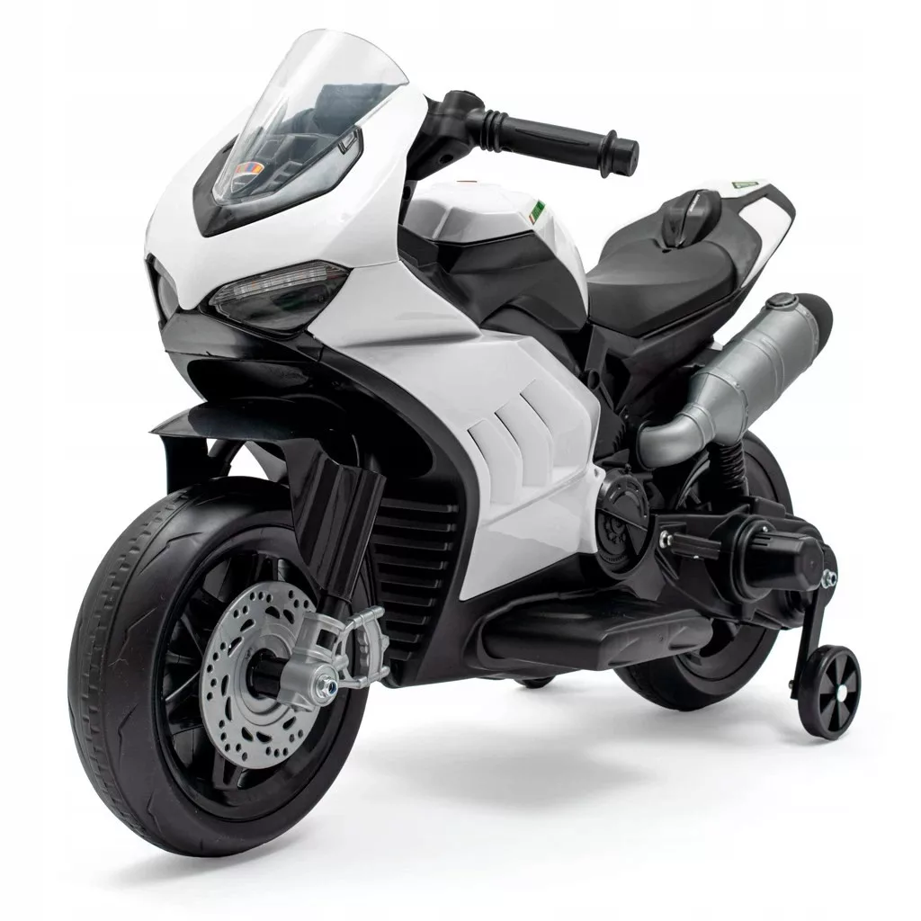 Daj dziecku radość z jazdy na własnym motocyklu elektrycznym! Dziecięcy motocykl elektryczny Supersport został zaprojektowany tak, aby zapewnić maksymalną zabawę i bezpieczeństwo małym zawodnikom. Model ten charakteryzuje się nowoczesnym designem, który rzuca się w oczy i jest wyposażony w praktyczne funkcje, które ułatwiają jazdę i obsługę.